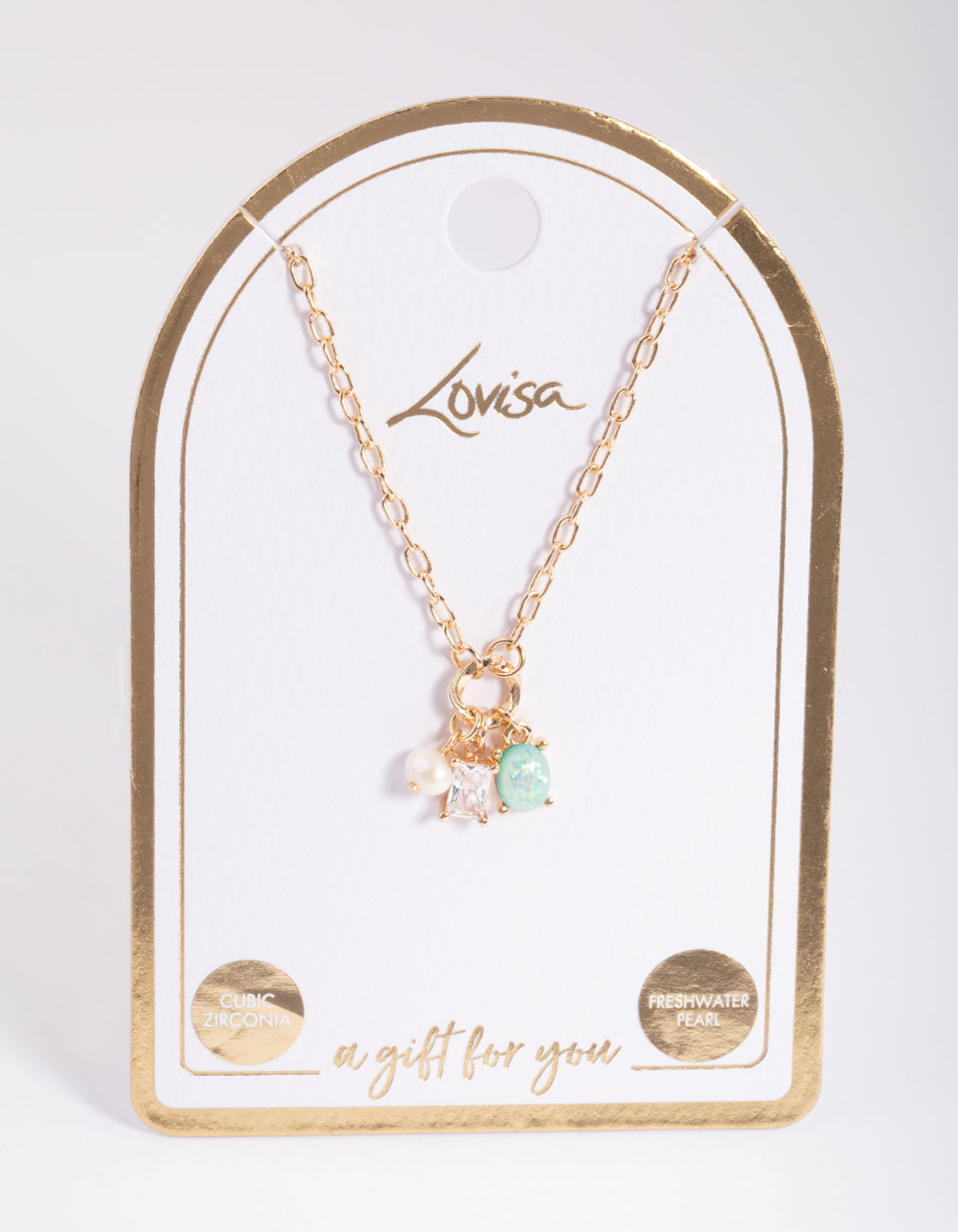• Gold Freshwater Pearl & Diamante Cluster Pendant Necklace - link has visual effect only
