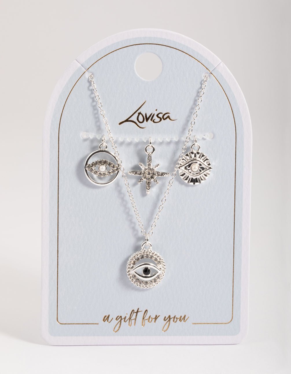 Silver Celestial & Evil Eye 4 Chain Necklace