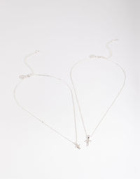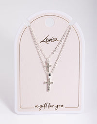 Silver Diamante Cross Layered Necklace