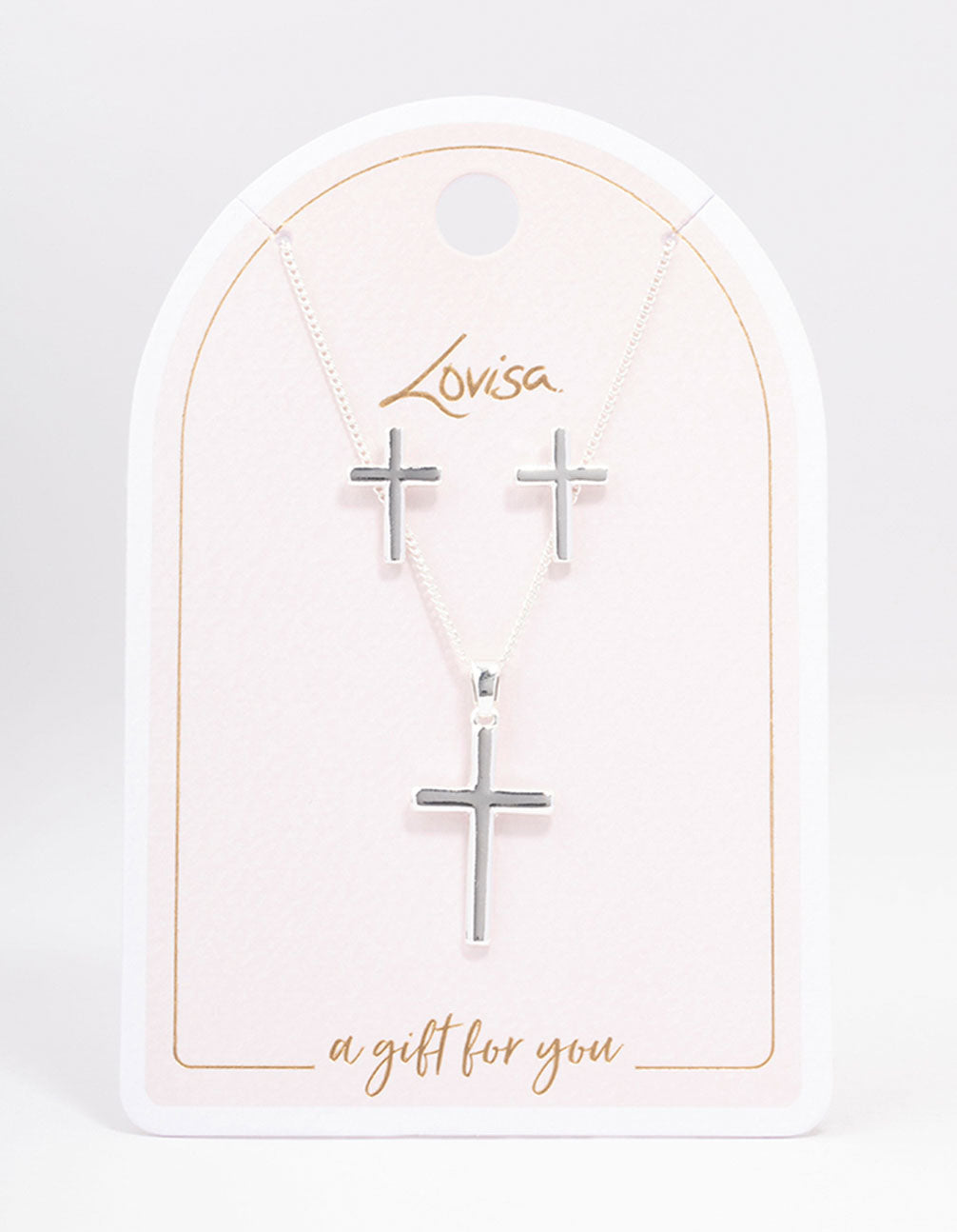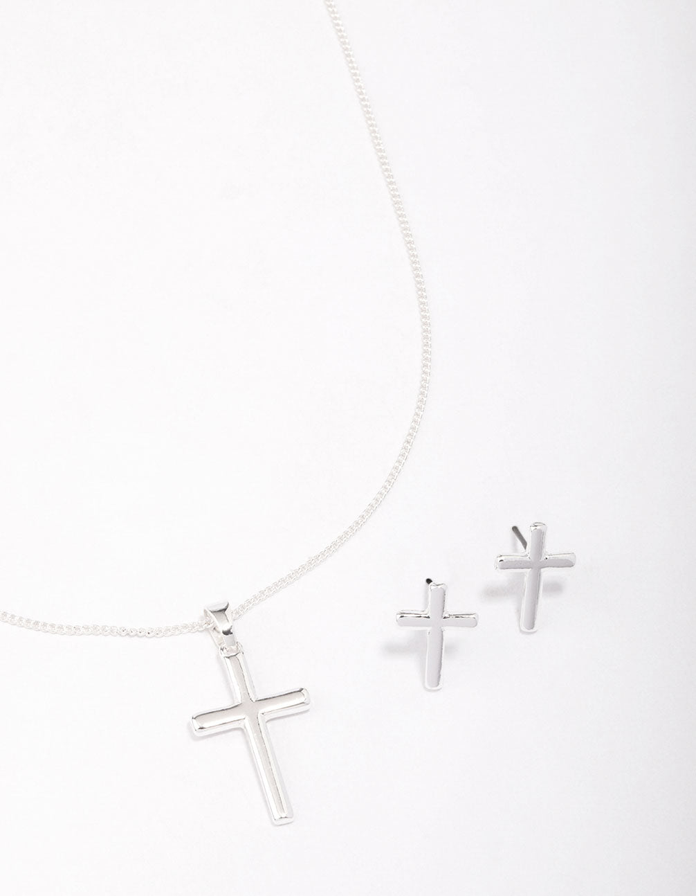 Silver Plain Cross Jewellery Set