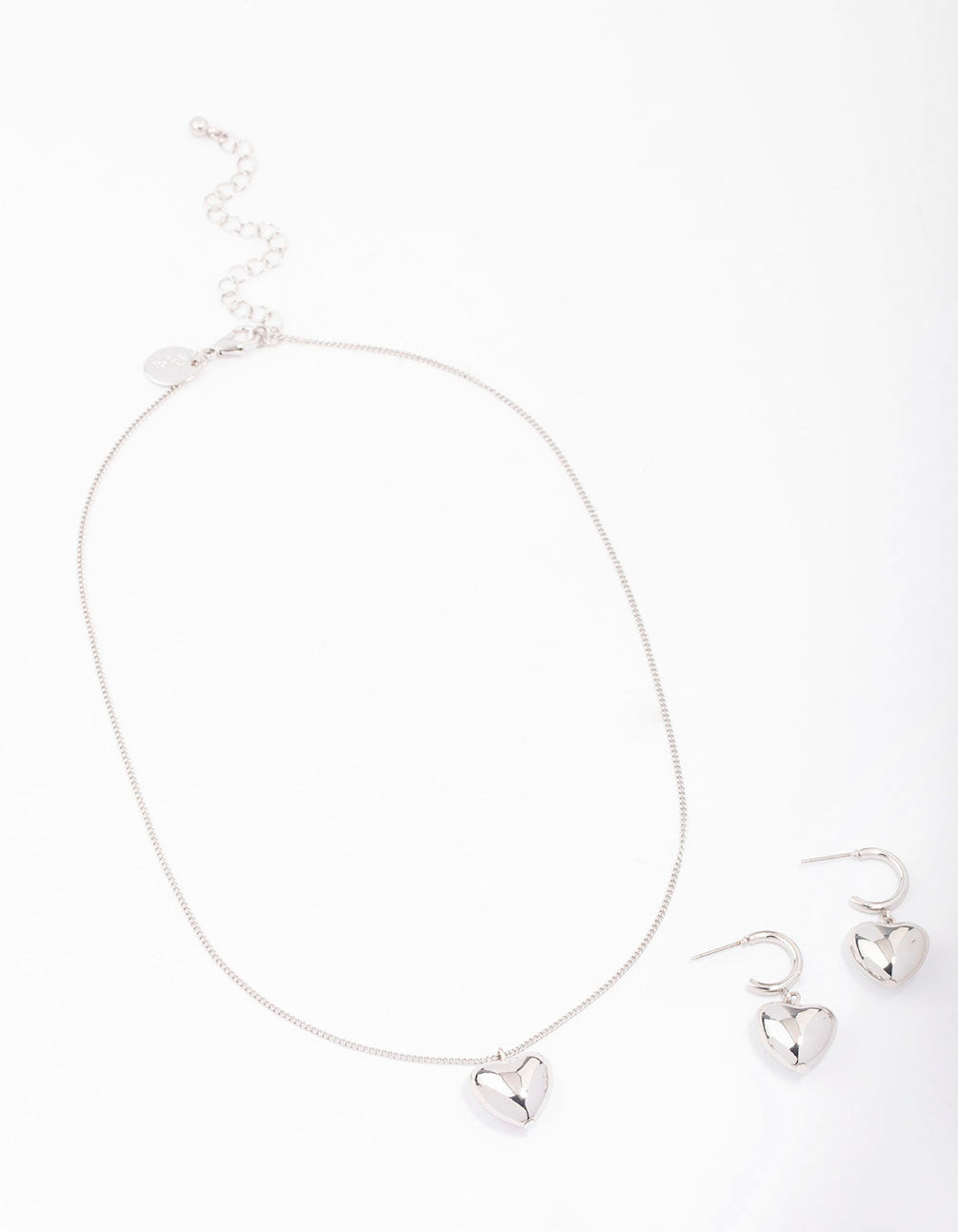 Silver Bold Heart Necklace & Earrings Jewellery Set