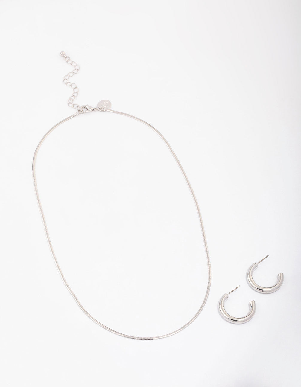 Silver Snake Chain Earrings & Necklace Jewellery Set