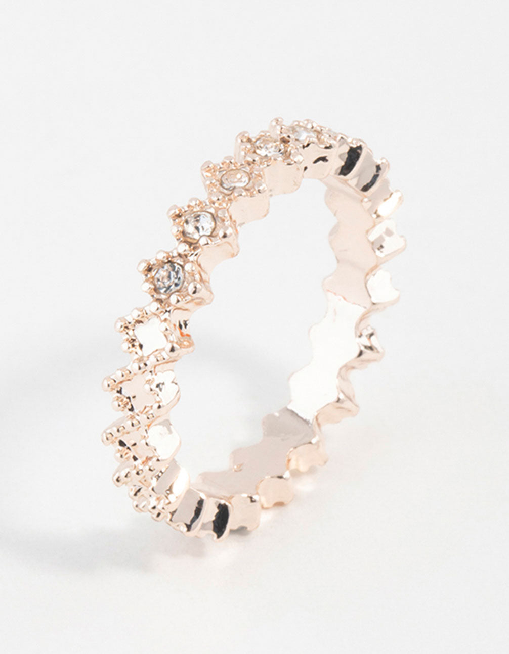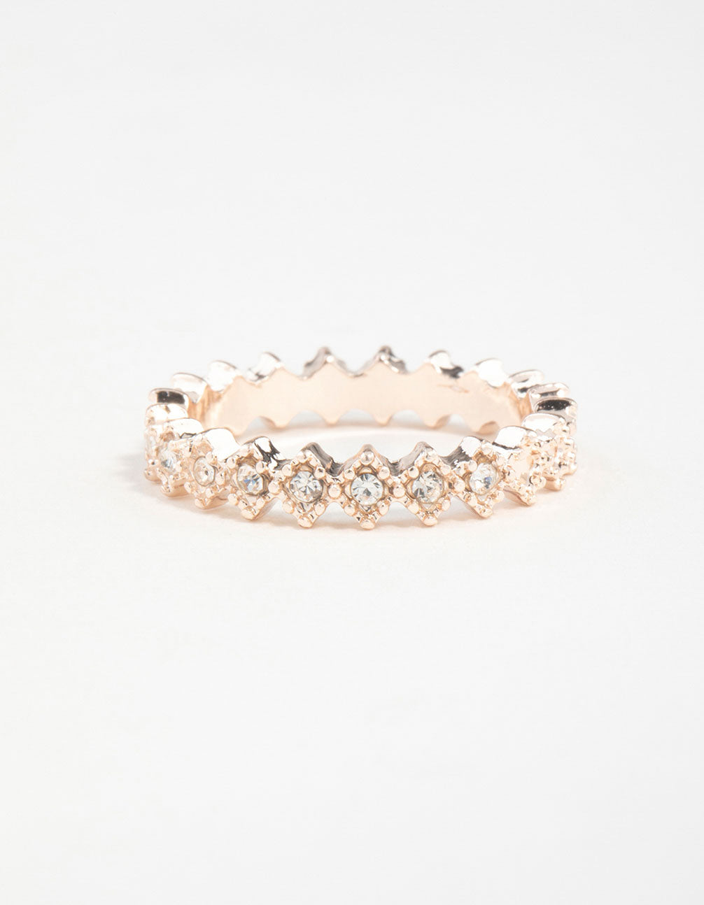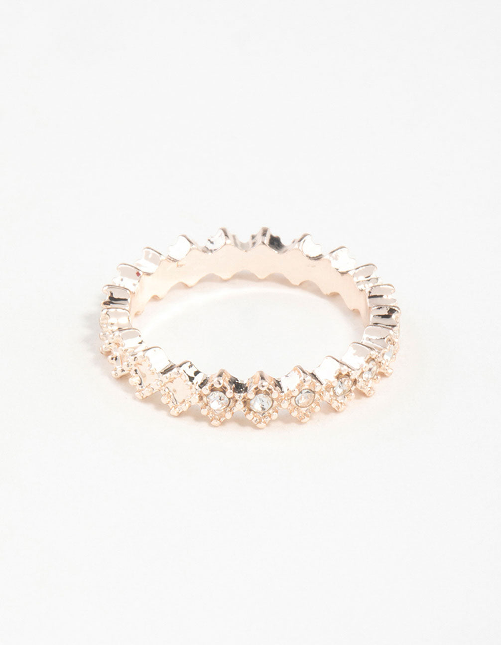 Elevate your ensemble with this stunning rose-gold-toned diamante band ring.