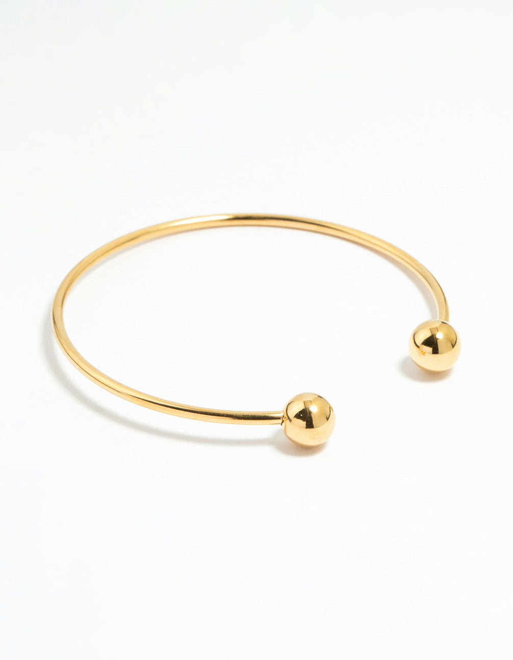 Elevate your wristwear game with this Waterproof Gold Plated Stainless Steel Ball Wrist Cuff. This wrist cuff features a minimalist ball design, making it a modern and versatile addition to your collection. Crafted from durable stainless steel and plated with gold, it's waterproof, so you can wear it effortlessly from poolside to dinner party. Perfect for layering with other bangles or letting it shine solo, this wrist cuff adds a refined touch to casual looks or complements a chic evening ensemble. Whether you're dressing up for a special occasion or adding flair to everyday outfits, this bangle is your go-to for timeless style.