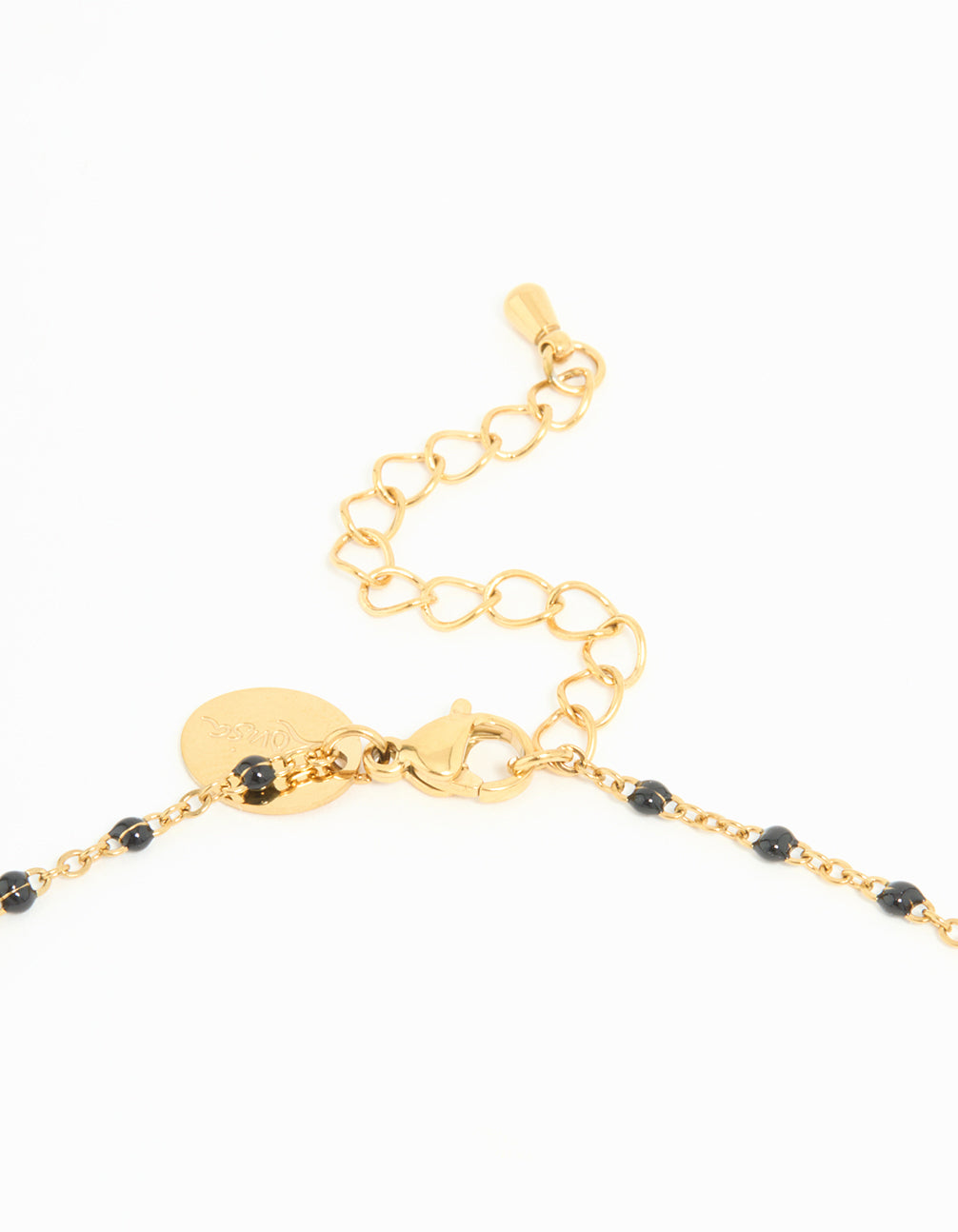 Waterproof Gold Plated Stainless Steel Black Bead Y-Necklace