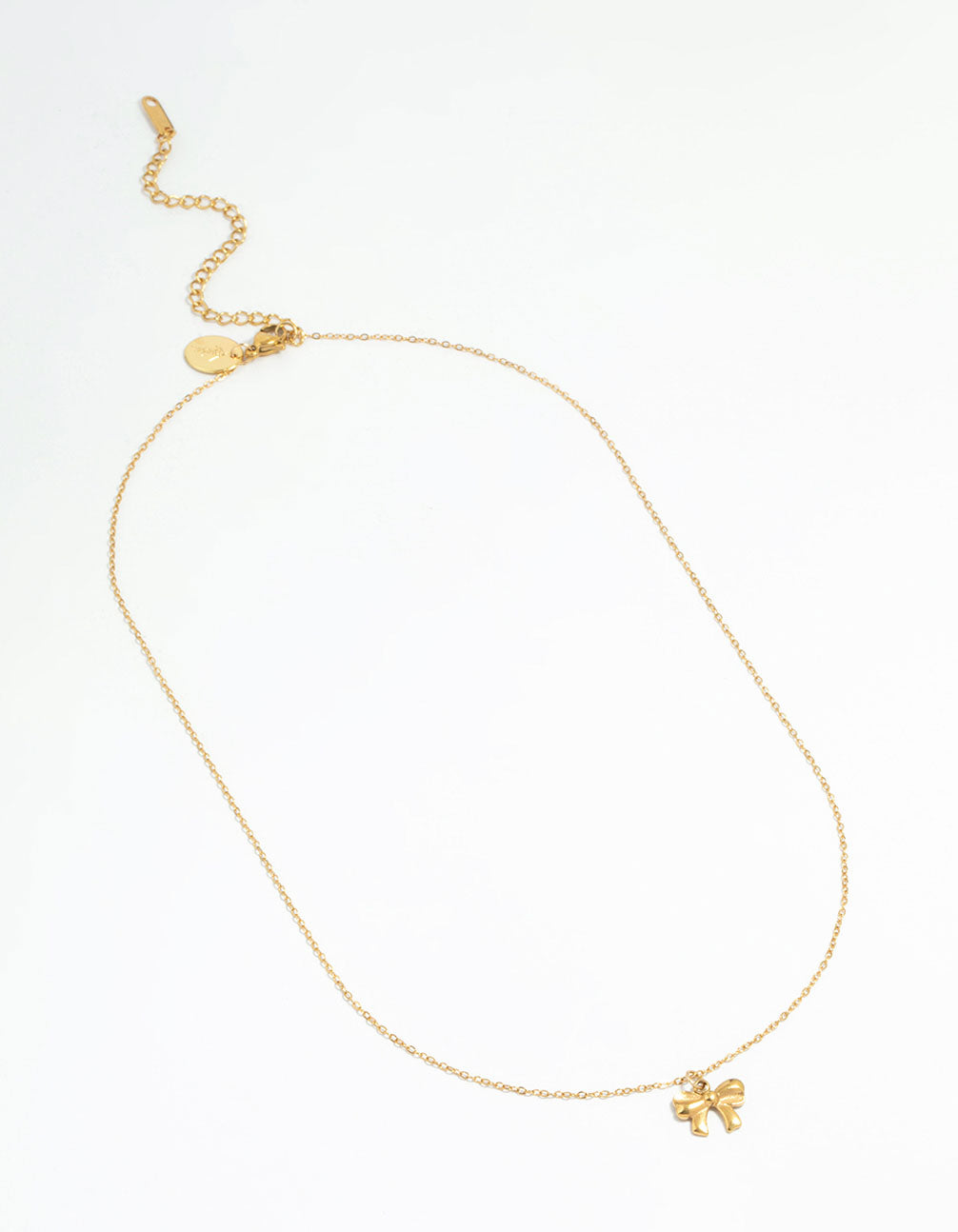 Waterproof Gold Plated Stainless Steel Bow Pendant Necklace