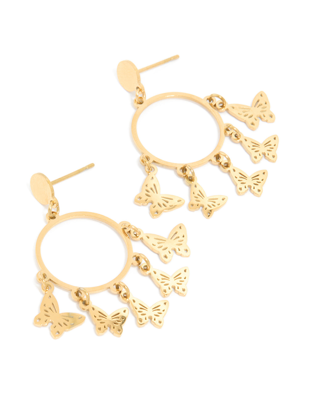 Waterproof Gold Plated Stainless Steel Butterfly Charms Hoop Earrings