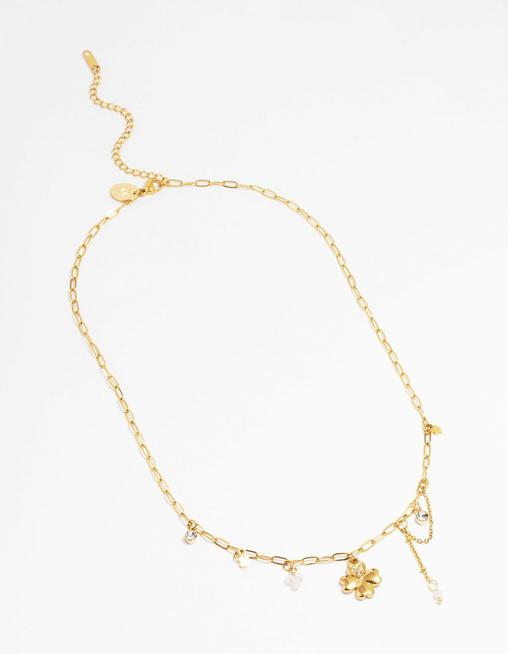 Waterproof Gold Plated Stainless Steel Clover Charm Necklace