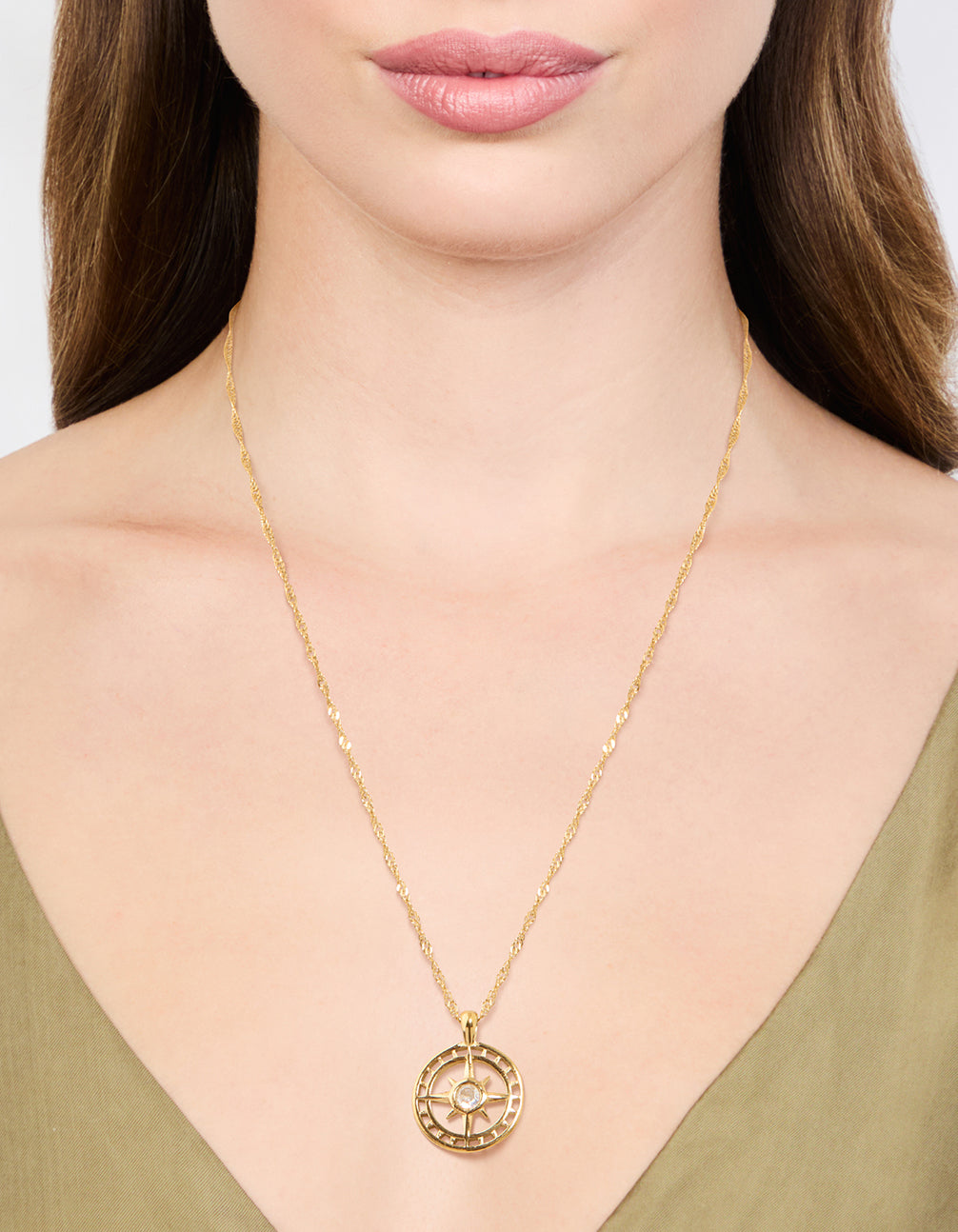 Waterproof Gold Plated Stainless Steel Compass Pendant Necklace