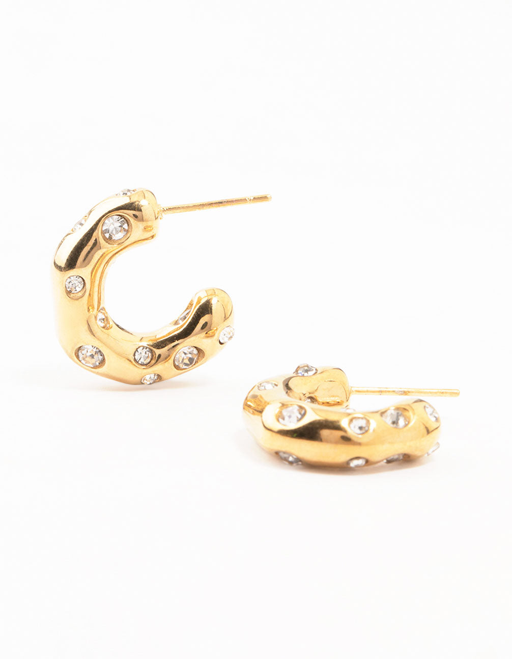 Waterproof Gold Plated Stainless Steel Crystal Molten Hoop Earrings Waterproof Gold Plated Stainless Steel Crystal Molten Hoop Earrings Waterproof Gold Plated Stainless Steel Crystal Molten Hoop Earrings