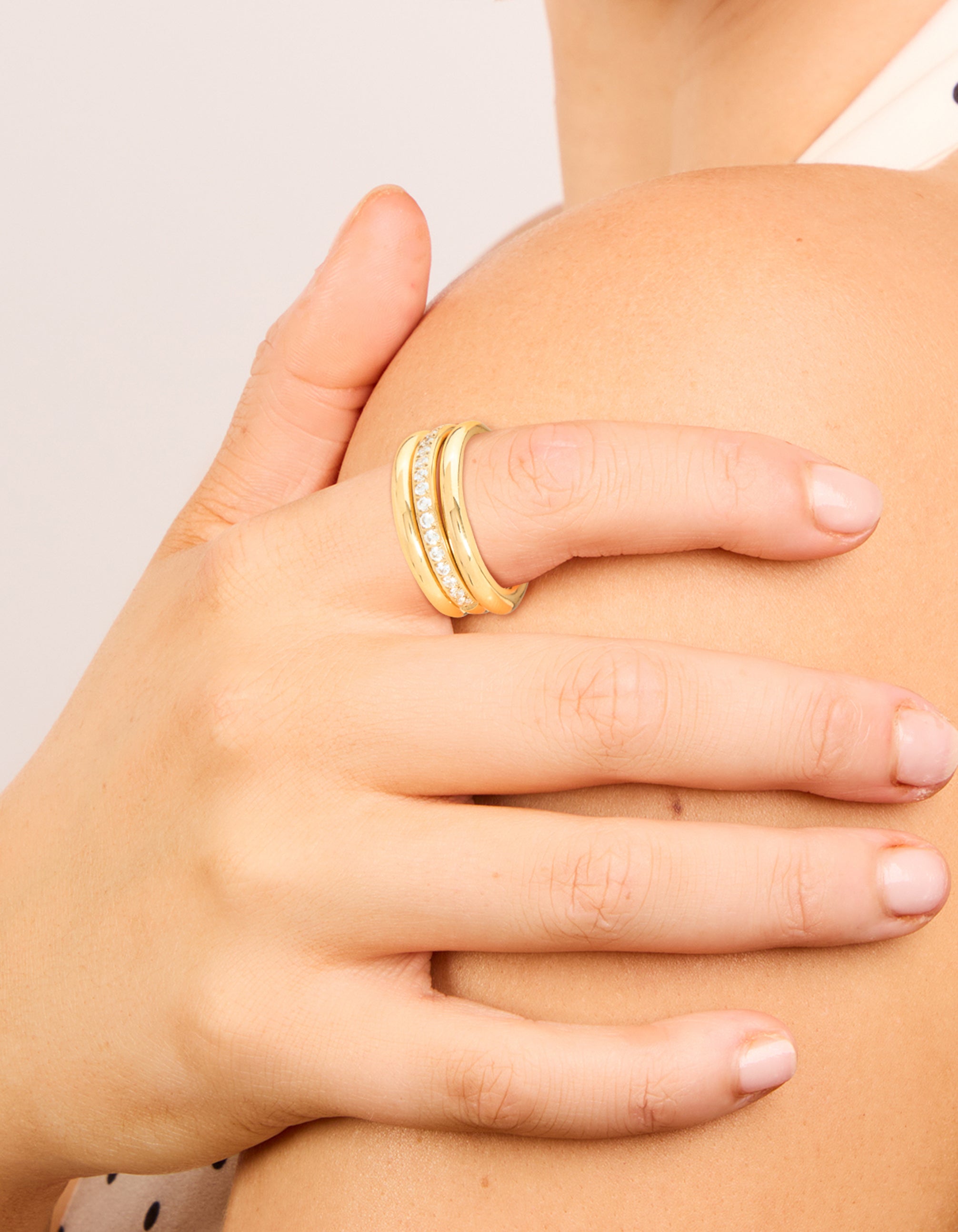 Add a touch of shimmer to your jewellery collection with this Waterproof Gold Plated Stainless Steel Cubic Zirconia Band & Smooth Rings Pack. This versatile set includes two sleek smooth rings and one dazzling cubic zirconia-encrusted band, all crafted from durable stainless steel with a luxurious gold plating. Perfect for everyday wear, these rings are waterproof, meaning you can sweat, swim, or shower without a second thought. Stack them together for a bold statement look, wear them solo for minimalist vibes, or mix and match with your favourite accessories. Whether you’re heading to brunch, the beach, or a night out, this set is your go-to for effortless style and shine.