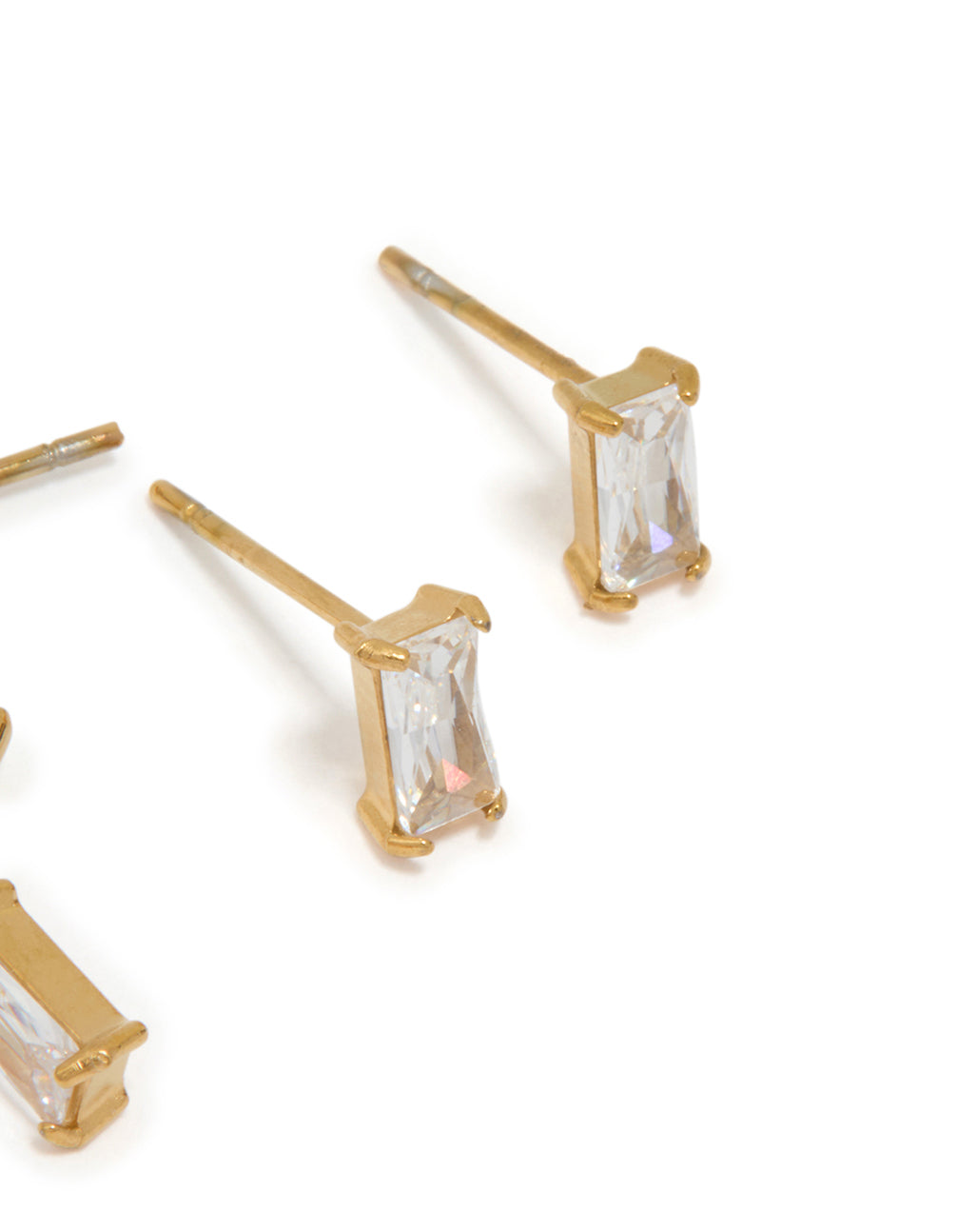Waterproof Gold Plated Stainless Steel Cubic Zirconia Rectangle Stud & Hoop Earrings 2-Pack