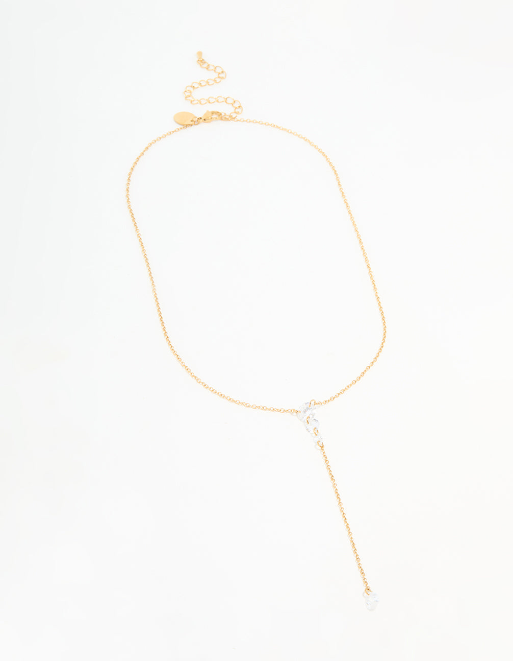 Waterproof Gold Plated Stainless Steel Cubic Zirconia Y-Necklace