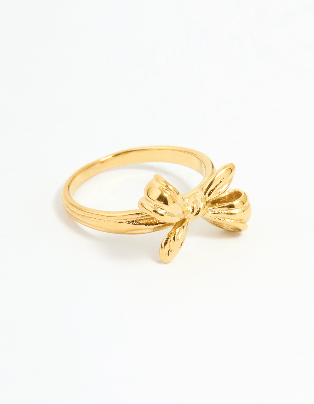 Waterproof Gold Plated Stainless Steel Dainty Bow Ring