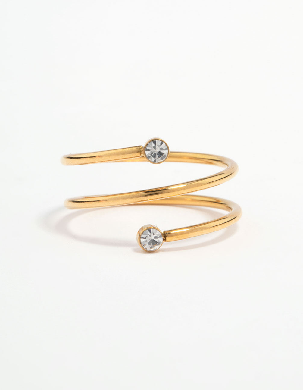 Waterproof Gold Plated Stainless Steel Diamante Coil Ring