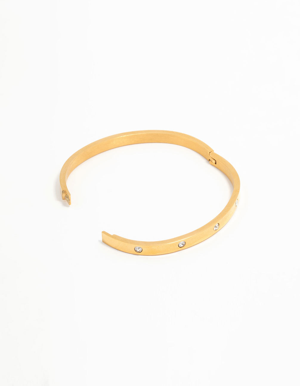 Waterproof Gold Plated Stainless Steel Diamante Hinge Bangle