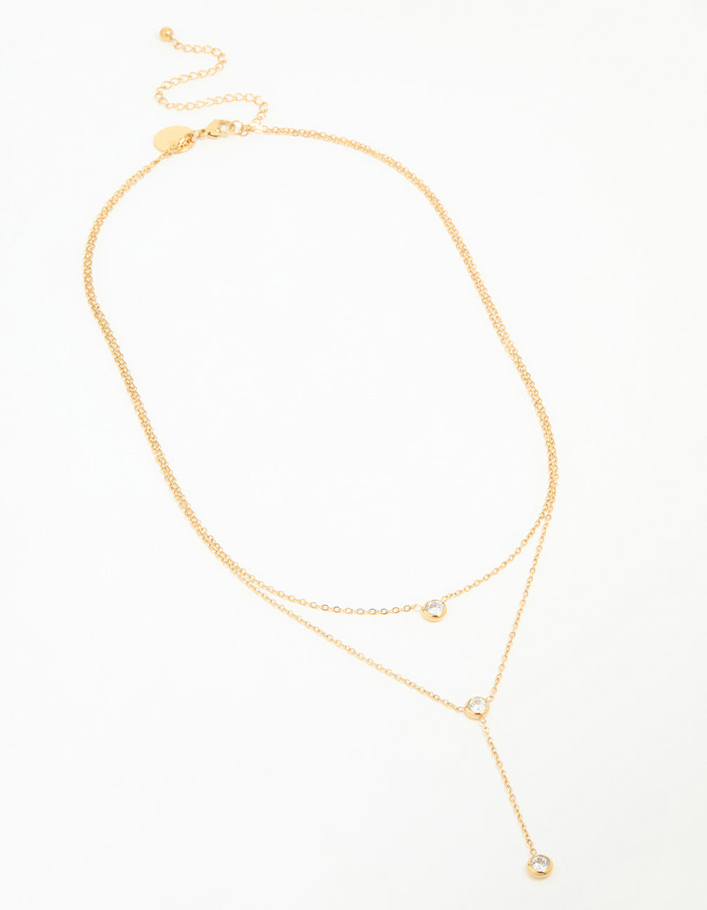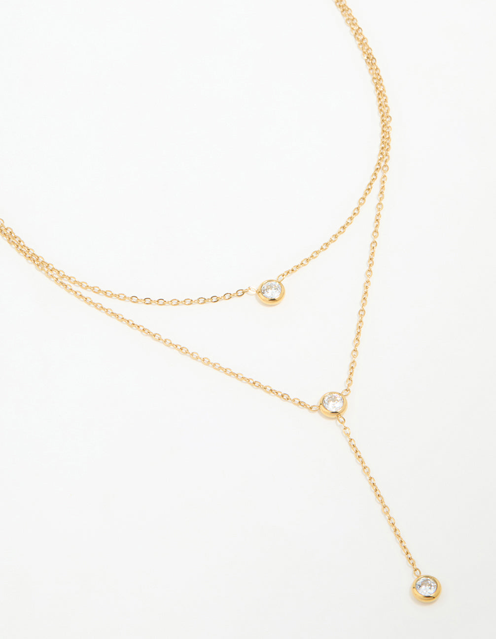 Waterproof Gold Plated Stainless Steel Diamante Pendant Layered Necklace