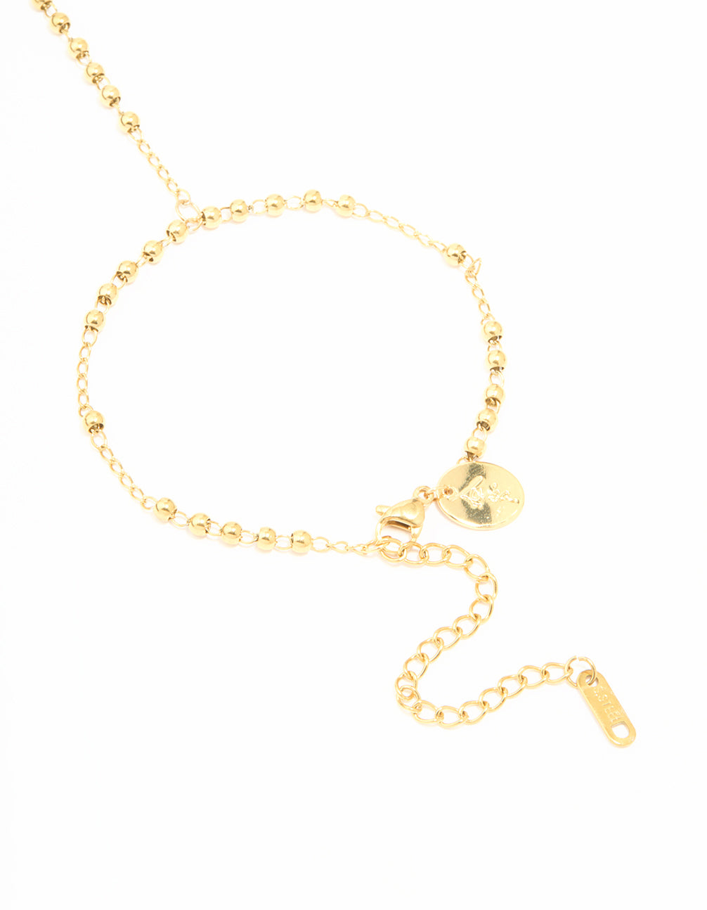Add a touch of boho charm to your look with this Waterproof Gold Plated Stainless Steel Discs Hand Chain. Designed for free spirits, this elegant hand chain features delicate gold-plated stainless steel discs that drape effortlessly across your hand, creating a style that's both playful and sophisticated. Perfect for festivals, beach days, or adding a unique twist to everyday outfits, it's lightweight yet durable, and its waterproof finish means you can wear it worry-free, rain or shine. Pair it with flowy dresses for a bohemian vibe or stack it with rings and bracelets for a layered, statement look. This hand chain is the ultimate accessory for those who love jewellery that's a little different but endlessly versatile.