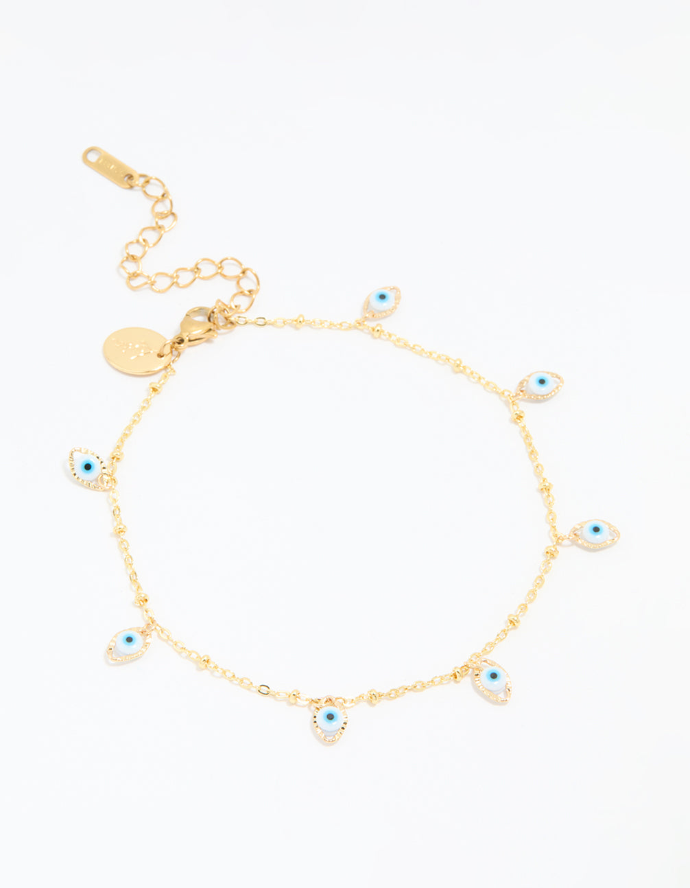 Waterproof Gold Plated Stainless Steel Evil Eye Anklet