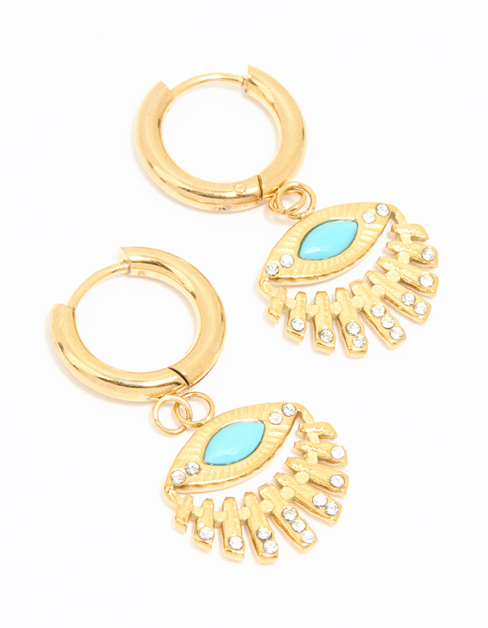 Waterproof Gold Plated Stainless Steel Fan Evil Eye Drop Earrings