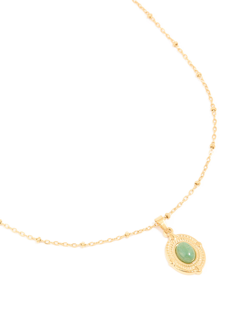 Waterproof Gold Plated Stainless Steel Green Semi Precious Stone Boho Disc Necklace