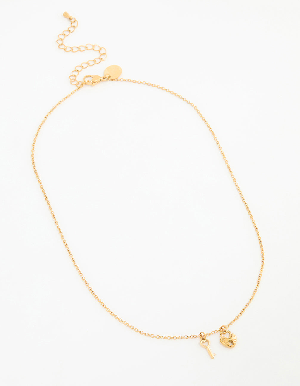 Waterproof Gold Plated Stainless Steel Heart Key Necklace