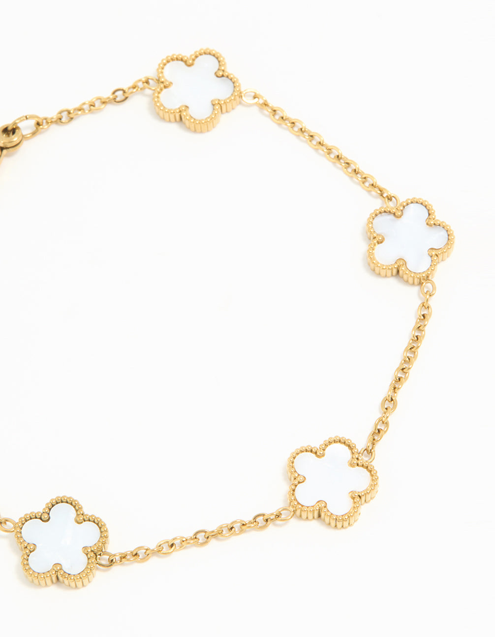 Waterproof Gold Plated Stainless Steel Ivory Inlay Flower Petals Charm Bracelet
