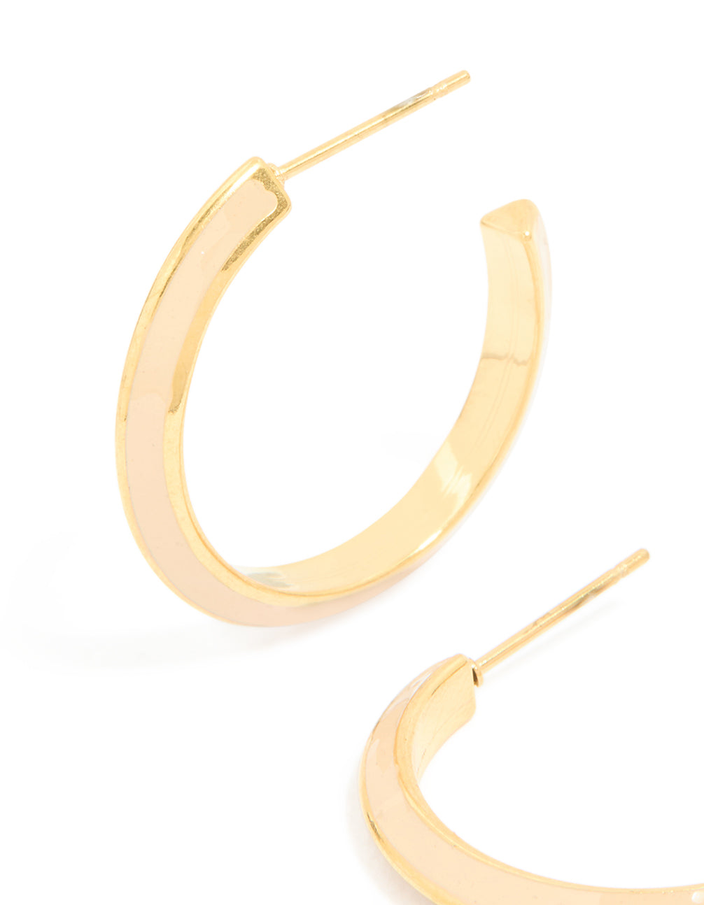 Waterproof Gold Plated Stainless Steel Neutral Toned Enamel Hoop Earrings