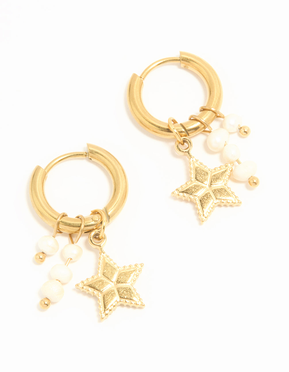 Shine bright with these Waterproof Gold Plated Stainless Steel Pearl Star Huggie Earrings. Featuring a sleek gold-plated stainless steel finish, these lightweight huggie earrings showcase delicate pearl star-shaped drops that add a dreamy, celestial vibe to your look. Designed to be waterproof, they're ideal for everything from a glam pool party to a rainy-day brunch. Pair them with a flowy dress for an effortlessly chic vibe or with tailored trousers and a blouse for a touch of sparkle at work. These versatile earrings are a must-have for jewellery lovers who want stylish, durable accessories that fit seamlessly into any occasion.