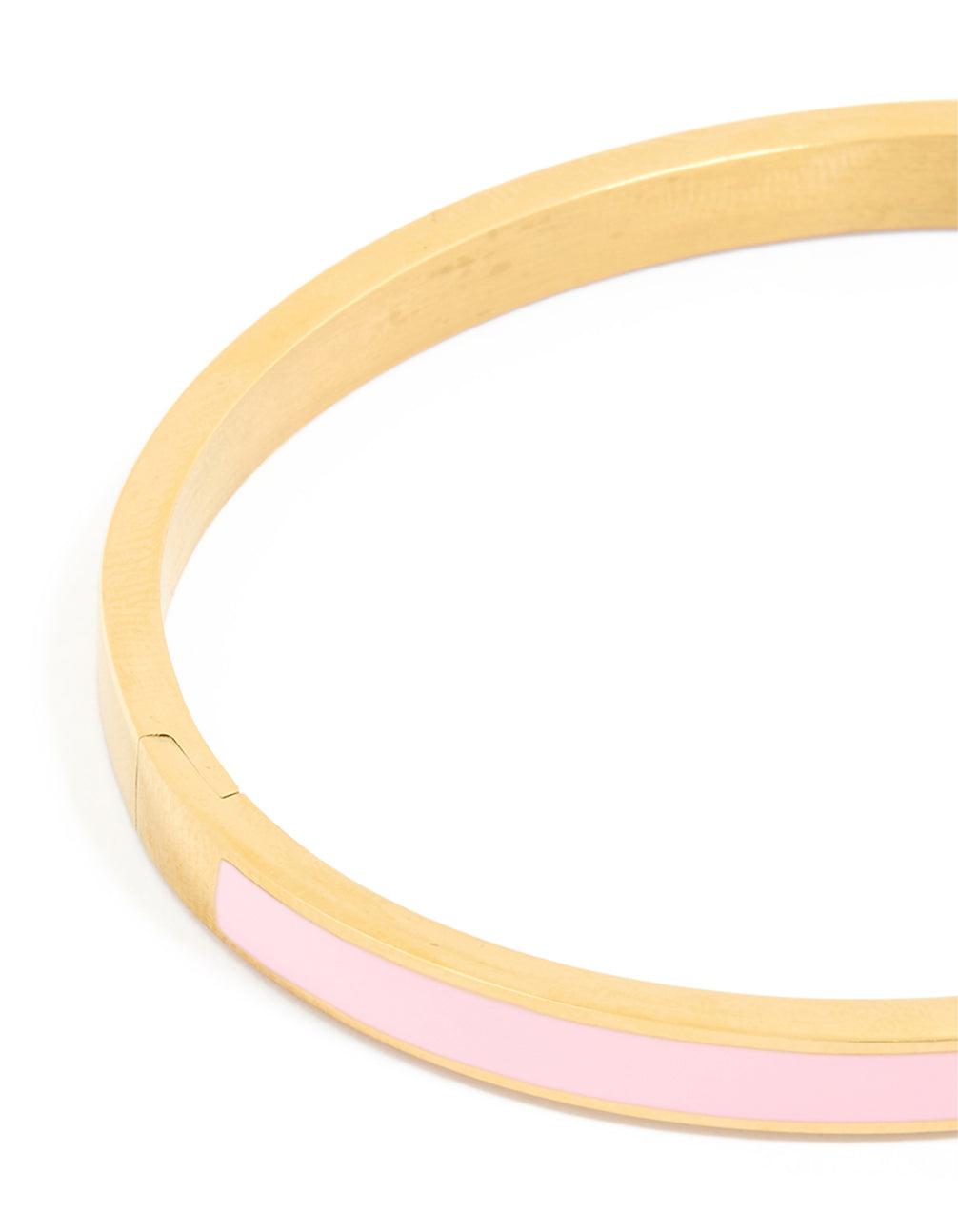 Waterproof Gold Plated Stainless Steel Pink Enamel Thick Hinged Bangle