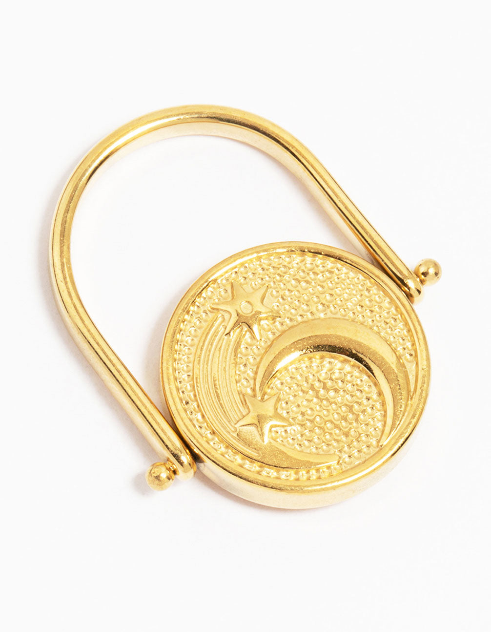 Looking for a ring that's as stylish as it is practical? Meet the Waterproof Gold Plated Surgical Steel Coin Twist Ring! This modern twist on a classic signet ring is crafted from durable surgical steel with a stunning gold plating, offering a sleek and polished look. Featuring a bold coin design with intricate detailing, it's perfect for adding a touch of elegance to any outfit. Whether you're heading to brunch, a festival, or just want to elevate your everyday style, this ring has got you covered. Its waterproof finish means it's ready for anything—wear it to the beach, gym, or even in the shower. Pair it with your favourite statement jewellery or let it shine solo for a chic, minimalist vibe.