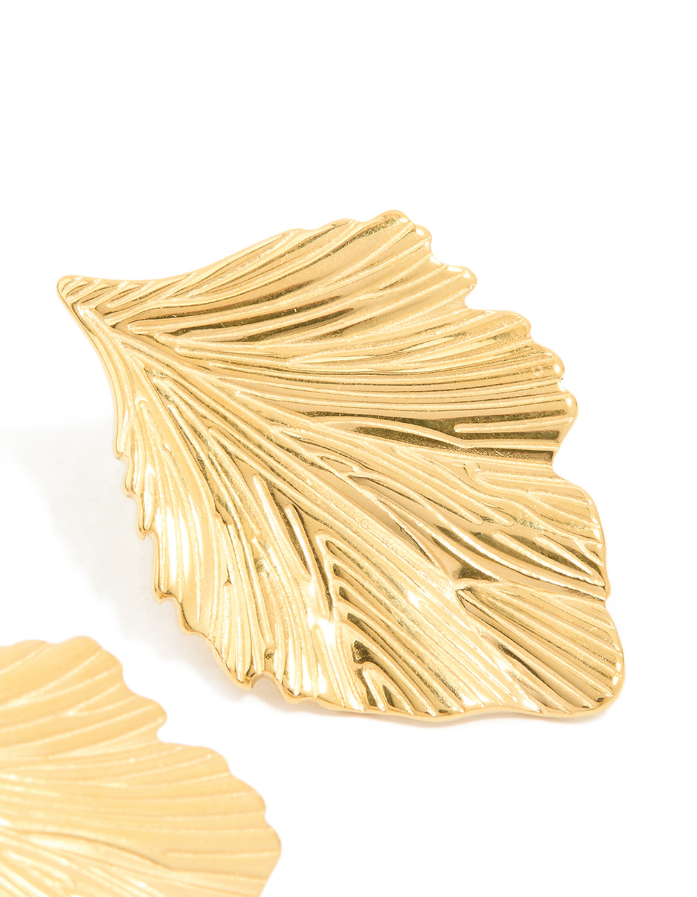Waterproof Gold Plated Stainless Steel Textured Leaf Earrings