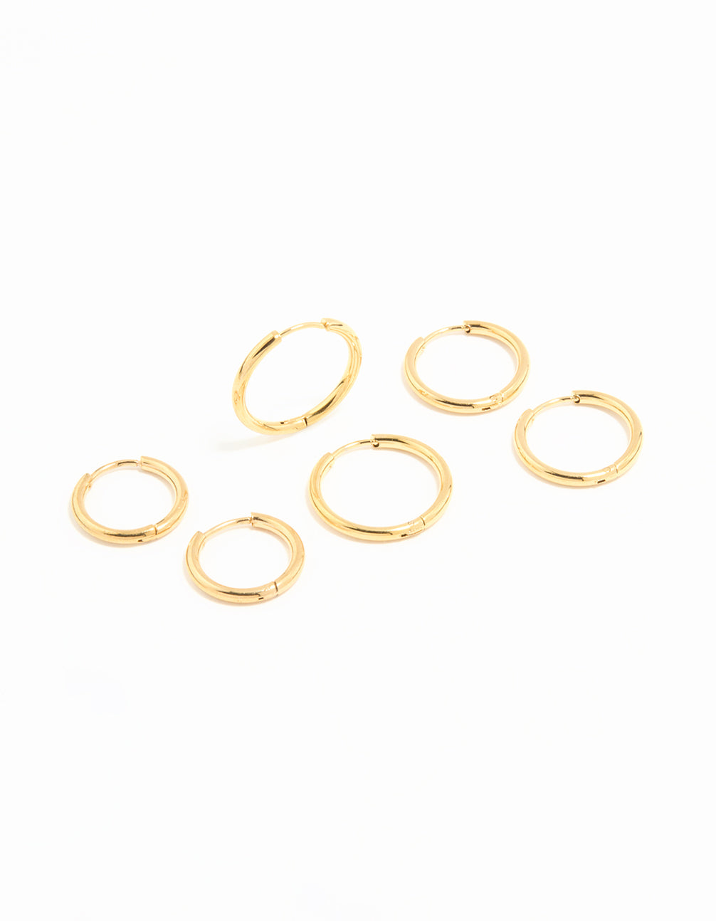 Waterproof Gold Plated Stainless Steel Thin Hoop Earrings 3-Pack