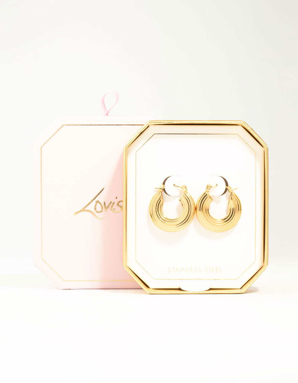 • Waterproof Gold Plated Stainless Steel Wide Line Textured Hoop Earrings - link has visual effect only