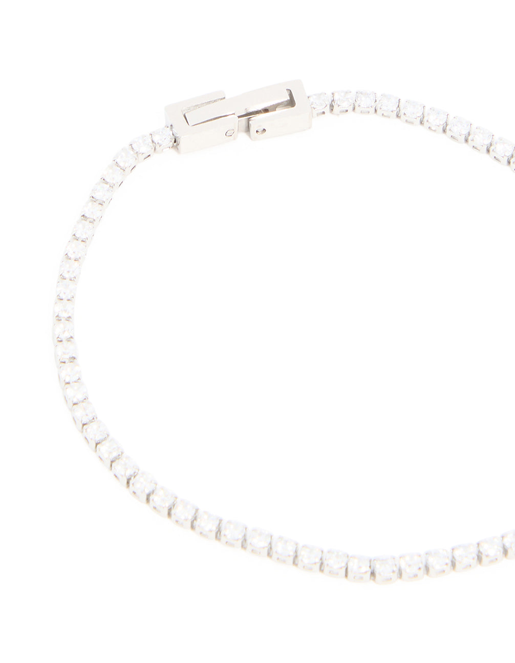 Elevate your everyday style with this Waterproof Stainless Steel Cubic Zirconia Tennis Bracelet. This sleek and timeless piece is designed with a classic tennis bracelet silhouette, featuring a delicate row of shimmering 2 mm-sized cubic zirconia crystals that catch the light beautifully. Made from durable stainless steel, it’s finished with a premium waterproof design, so you can wear it while swimming, sweating, or even in the shower, no need to take it off! Perfect for every occasion, this bracelet can be dressed up or down. Pair it with a chic evening dress for a touch of understated glamour or layer it with your favourite bangles for a stylish, casual vibe. A must-have for adding effortless sparkle to your jewellery collection!