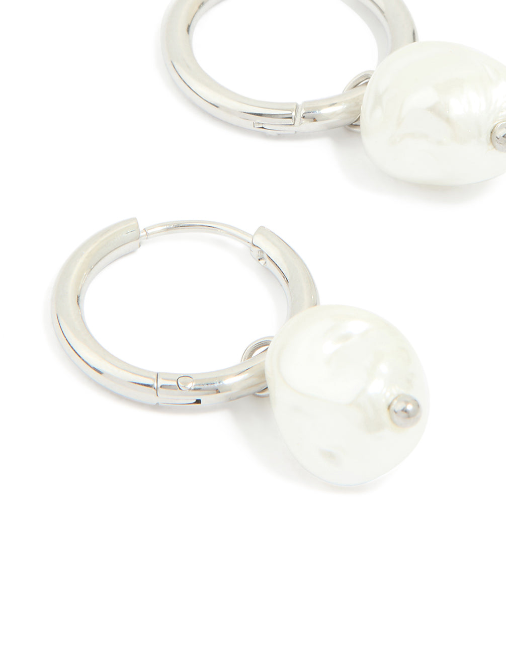 Waterproof Stainless Steel Pearl Huggie Earrings Waterproof Stainless Steel Pearl Huggie Earrings Waterproof Stainless Steel Pearl Huggie Earrings