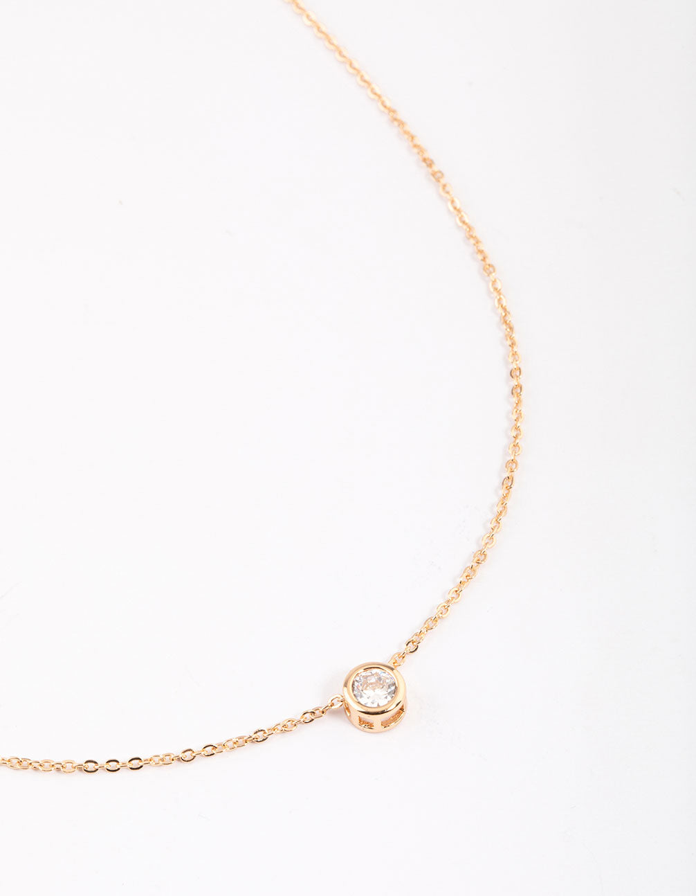 Gold Round Bezel Cubic Zirconia Pendant Necklace