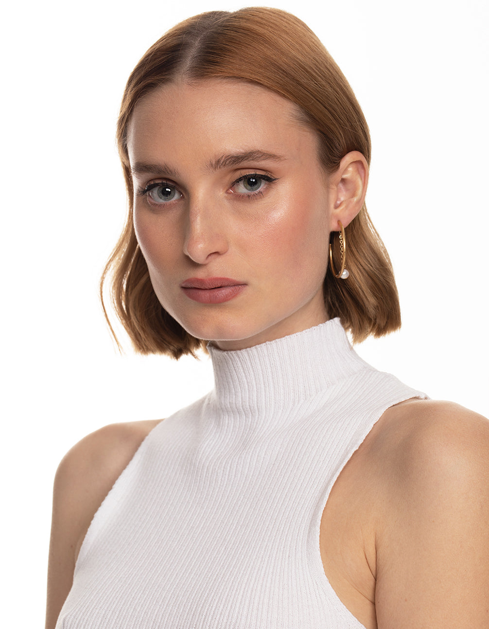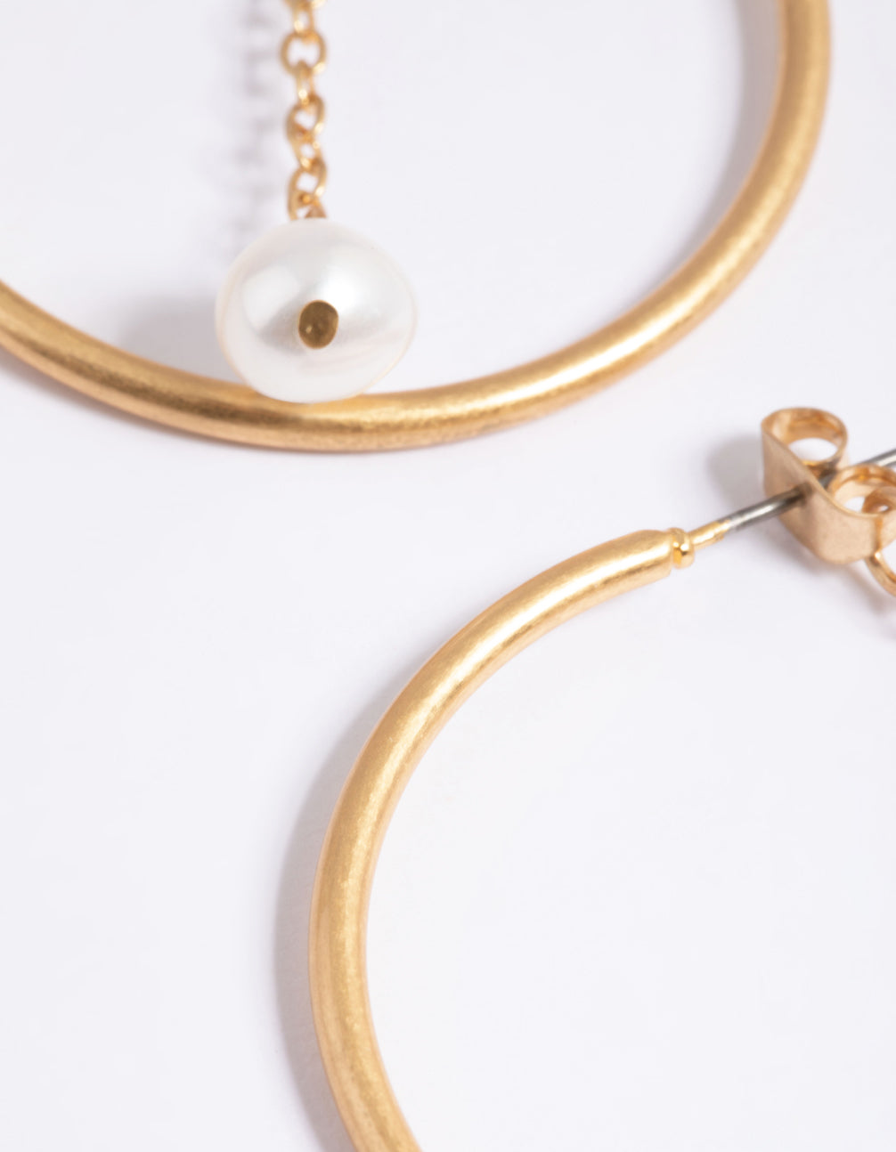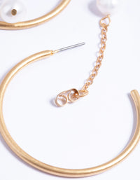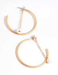 Worn Gold Freshwater Pearl Chain Hoop Earrings
