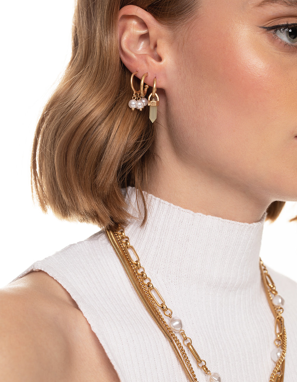Worn Gold Shard & Pearl Pack Hoop Earrings