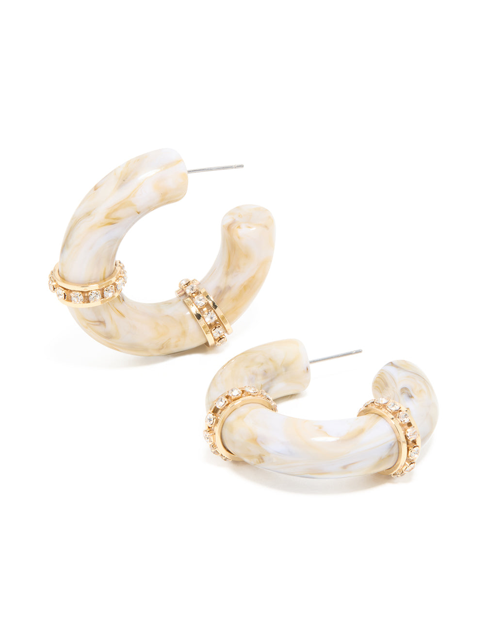 Elevate your accessory game with these stunning White Acrylic Diamante Hoop Earrings. Designed with a chic marbled acrylic finish and sparkling diamantes, these cuff-style hoops are perfect for adding a touch of elegance to any outfit. The classic hoop shape gets a modern update, making them ideal for everyday wear or dressing up for special occasions. Pair them with a flowy dress for brunch or a sleek blazer for a night out—their versatile style makes them a must-have. Lightweight and effortlessly stylish, these earrings are perfect for anyone who loves jewellery that's both playful and polished.