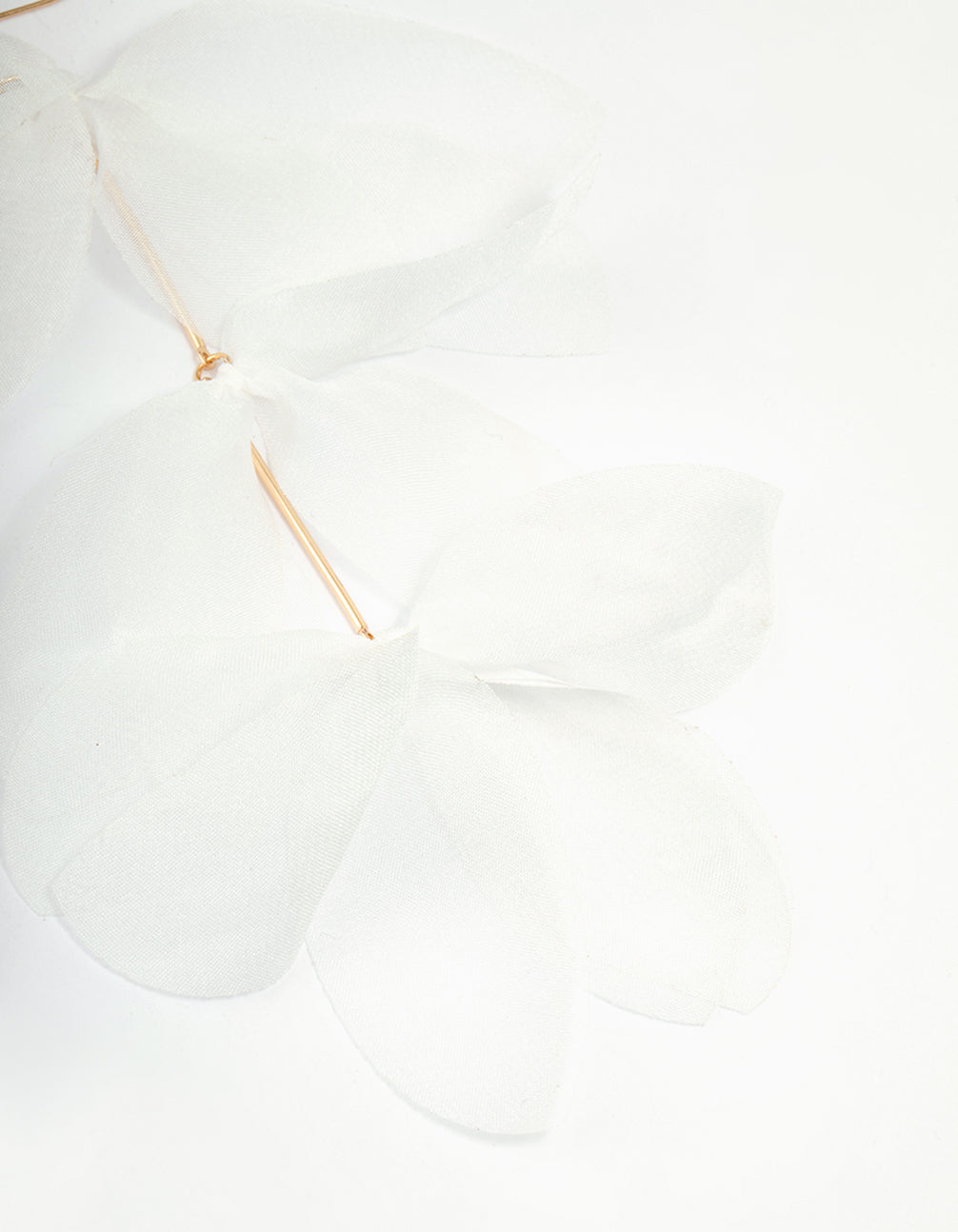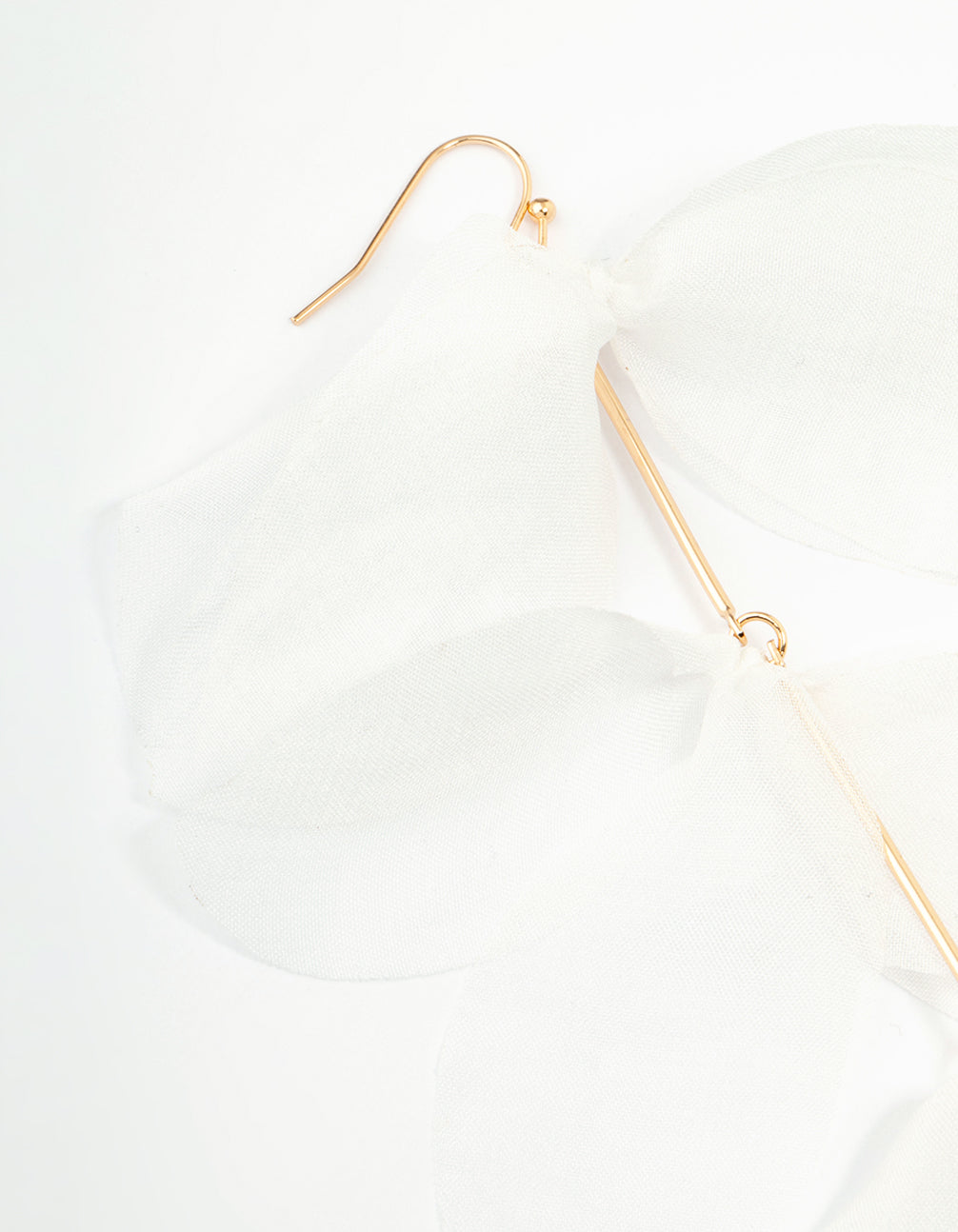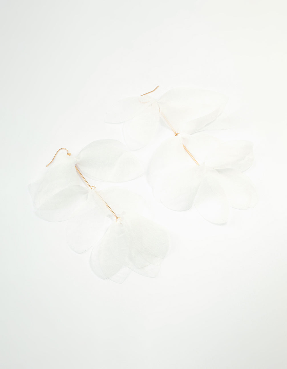 Meet your new favourite earrings, these White Chiffon Fabric Petals Drop Earrings! These ethereal earrings add elegance and whimsy to any outfit with their chiffon flower design.