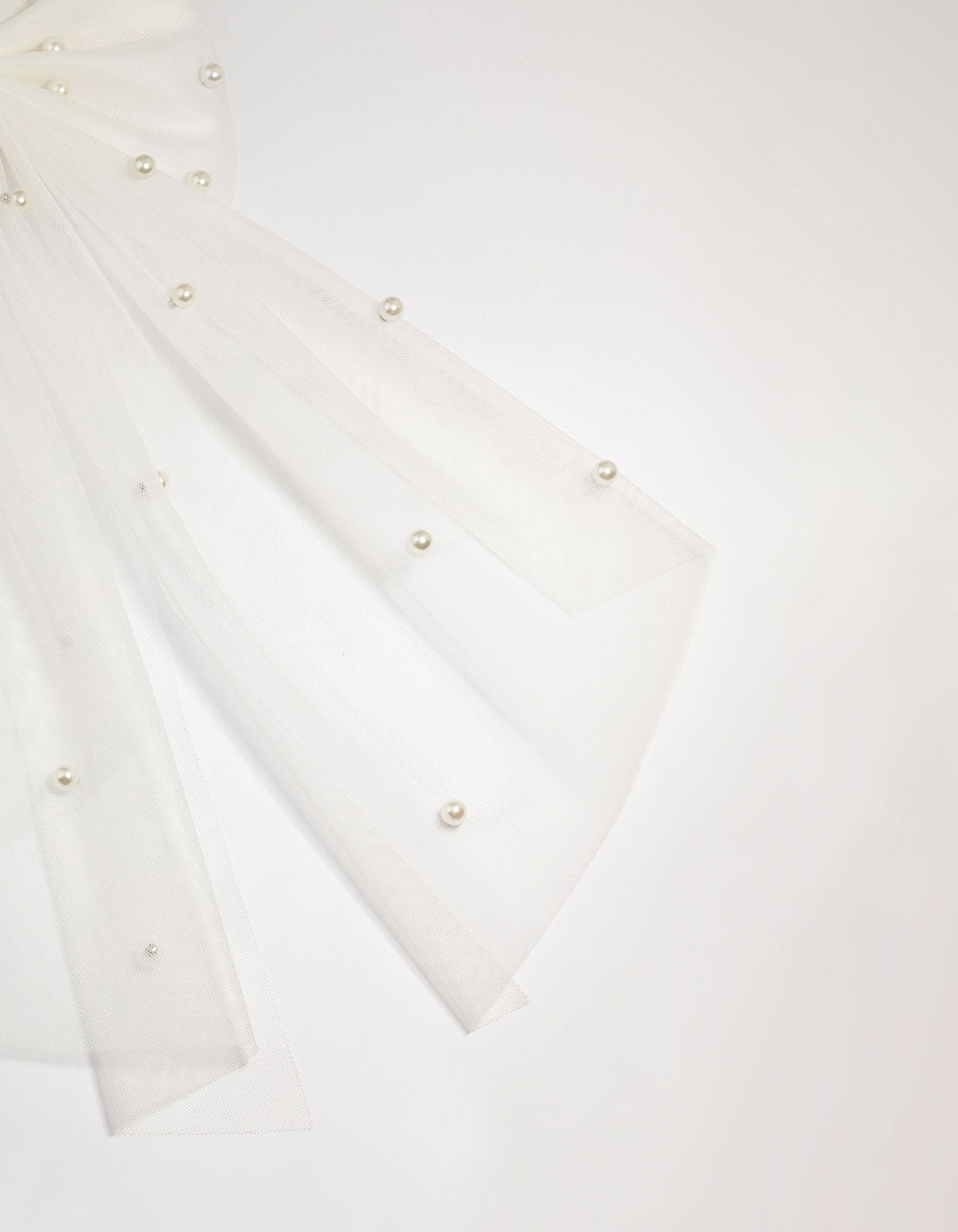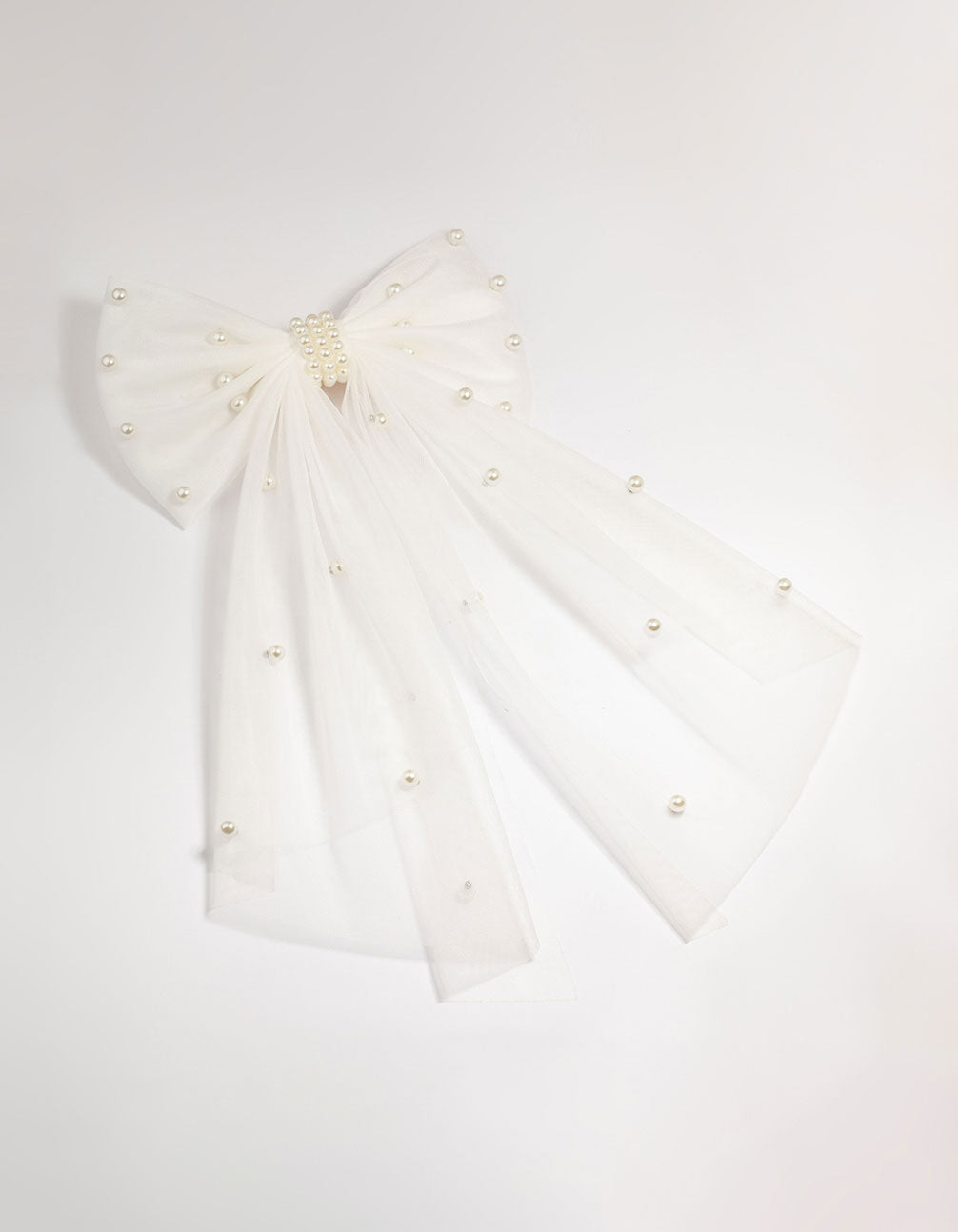 Add a sprinkle of elegance to your look with this White Fabric Pearl Scatter Bow Clip. This dreamy hair accessory features soft white fabric adorned with scattered pearls, making it perfect for special occasions. Whether you're walking down the aisle, attending a wedding, or dressing up for a party, this bow clip is the ultimate finishing touch. Its delicate design and timeless style pair beautifully with flowy dresses, tailored jumpsuits, or even a chic blazer for a modern twist. Ideal for bridal wear or adding a touch of glamour to your everyday look, this clip is as versatile as it is stunning. The easy-to-use design keeps your hair effortlessly in place while elevating your style in seconds.
