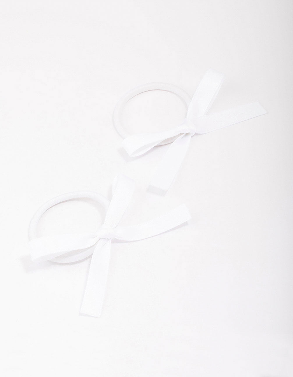 This simple hair accessory pack contains two simple hair ties adorned with silky white bows — perfect for elevating your hairstyle.