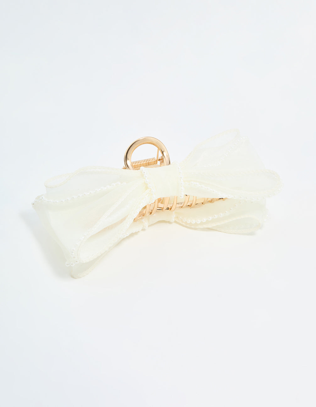 • White Organza Fabric & Pearl Bow Claw Clip - link has visual effect only