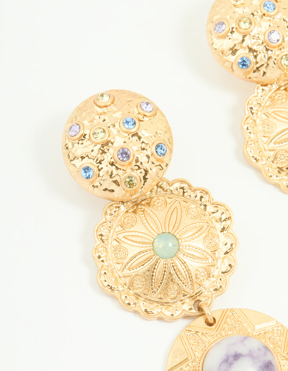 Worn Gold Large Disc Drop Earrings