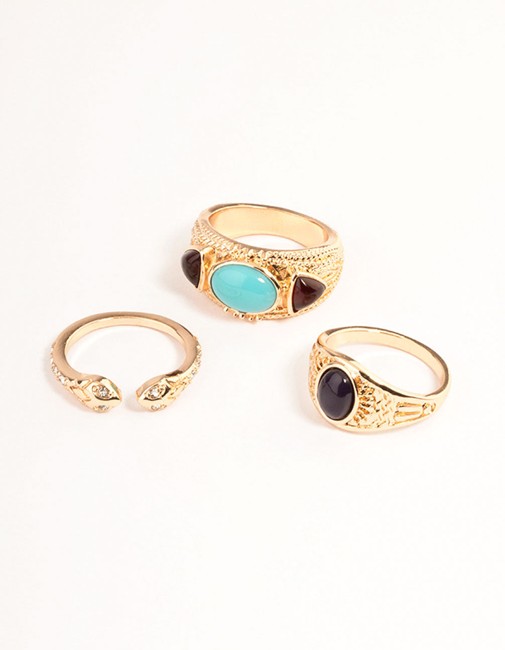- Pair this snake motif ring set with a black cord pendant necklace for the ultimate 'it-girl' look.