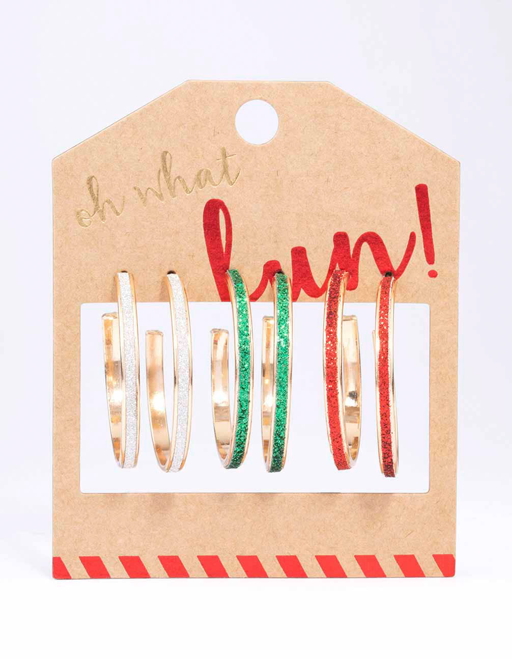 Gold Glitter Festive Hoop Earrings 3-Pack