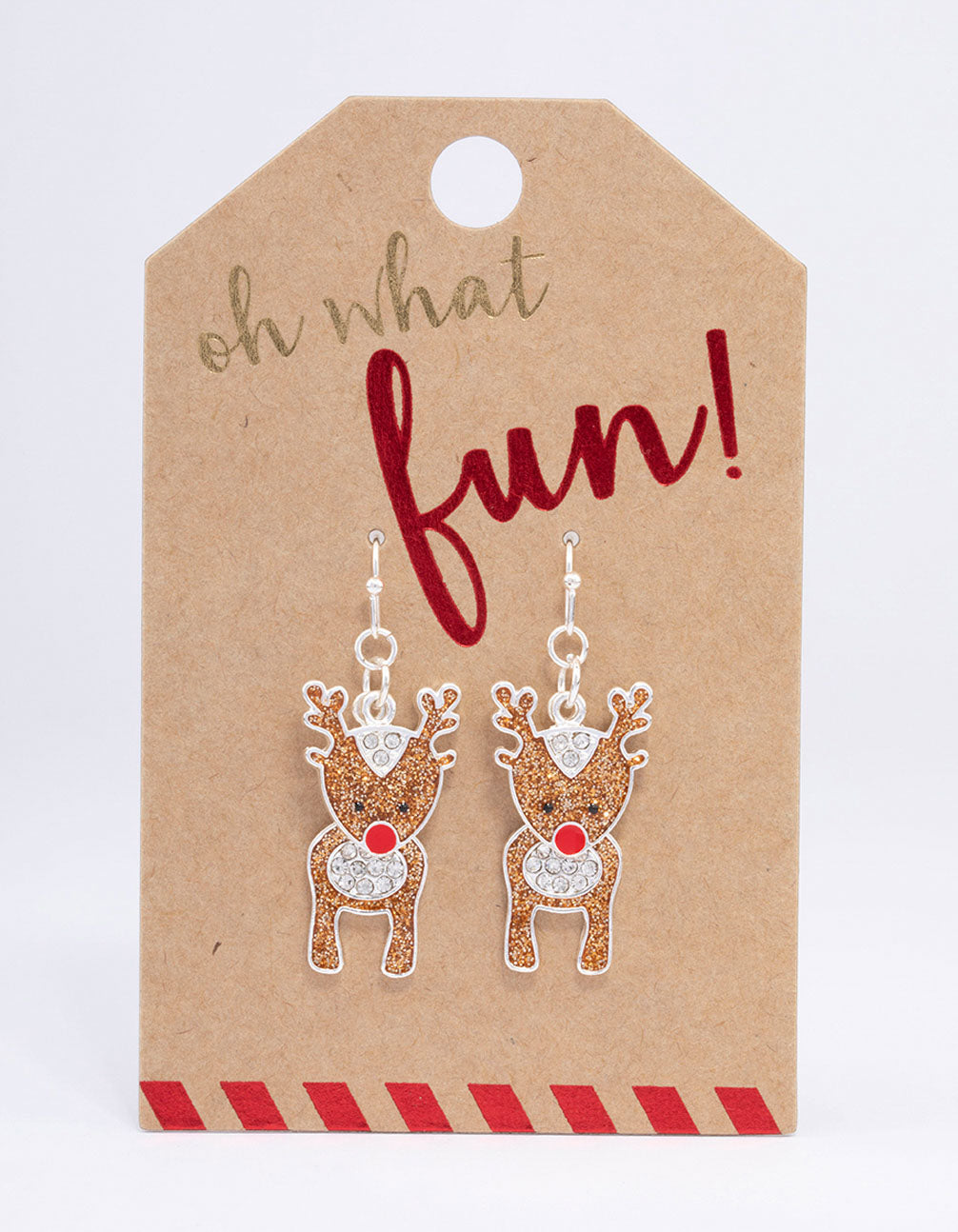 - These silver drop earrings feature sparkly reindeer characters, the perfect adorable addition to your festive stack.