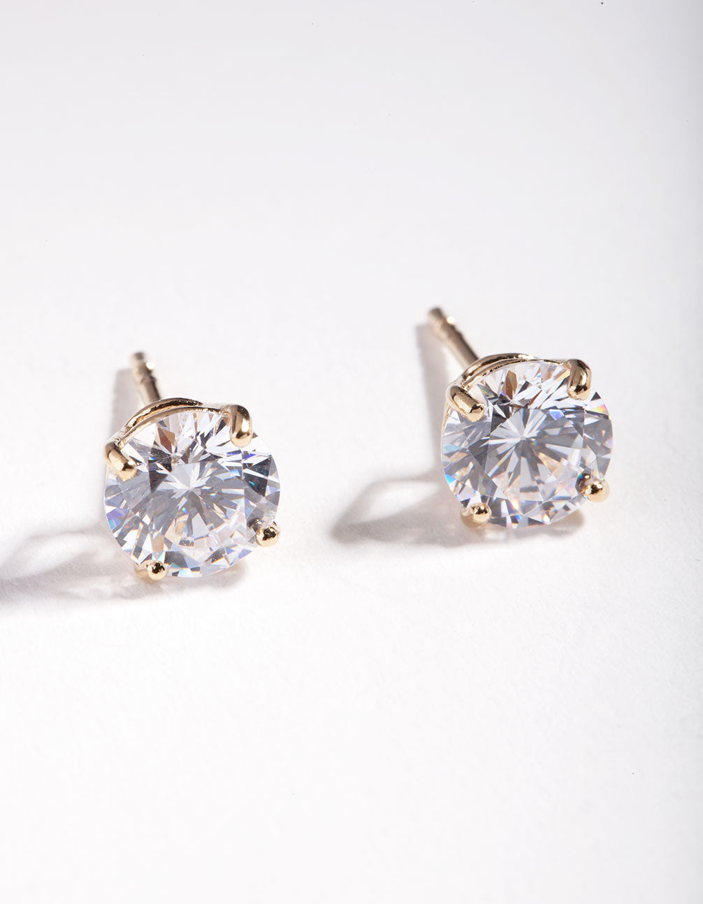 Gold Plated Sterling Silver 1 Carat Cubic Zirconia Stud Earrings