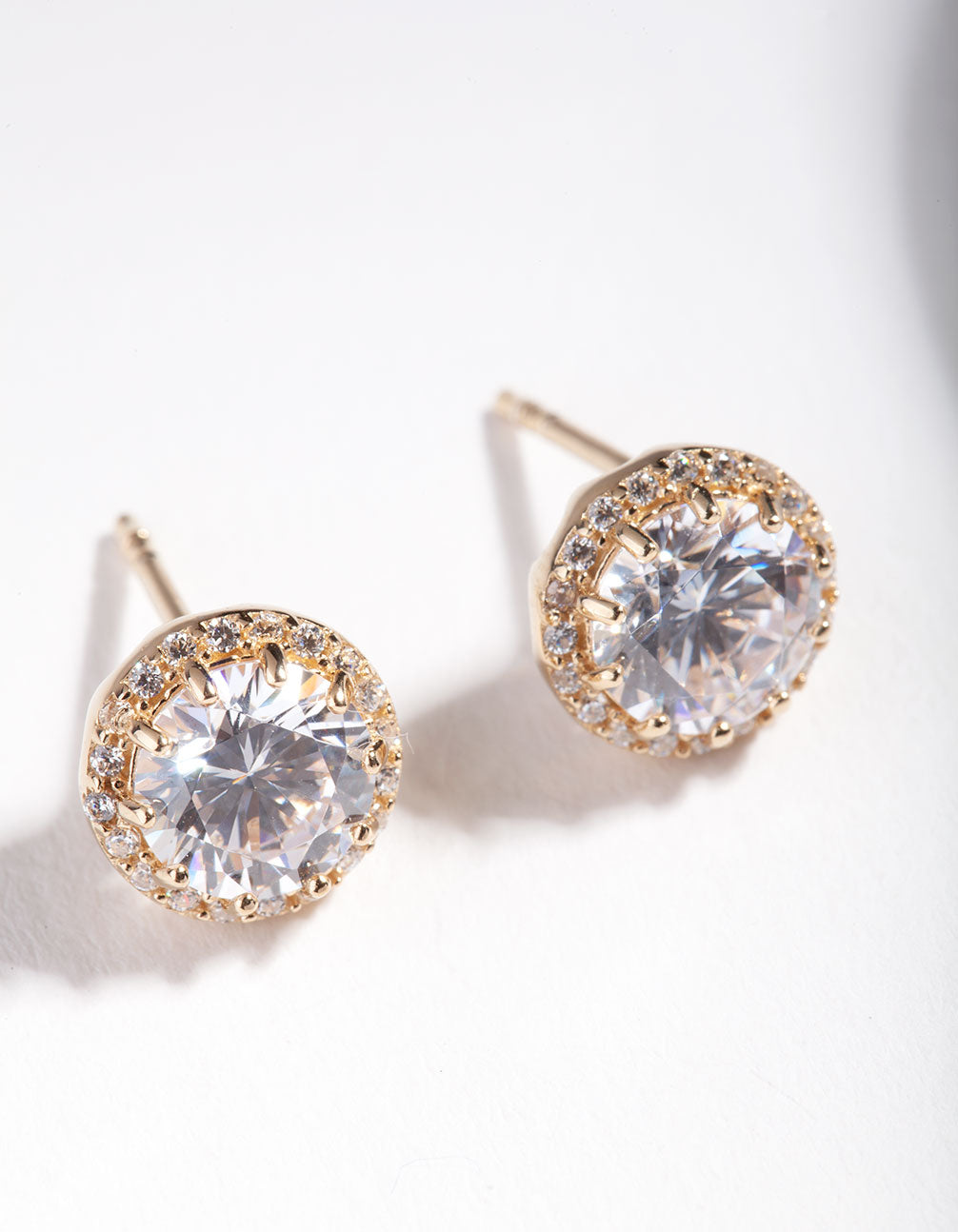 Gold plated sterling silver styles are the ultimate jewellery-box essential. Dress up your look with this stunning 5mm cubic zirconia halo stud earring.